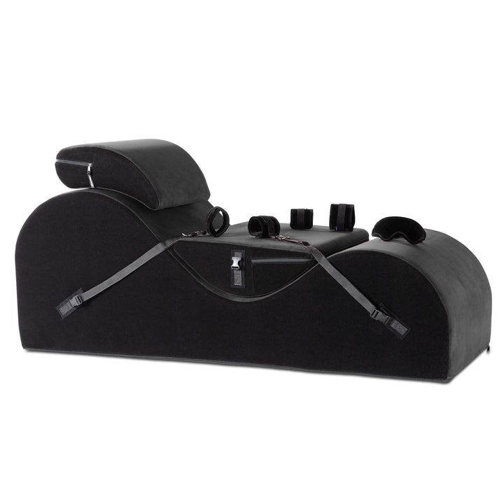 Esse Valkyrie Edition luxury sex chaise in black Velvish fabric with microfiber cuff kit, enhancing intimate experiences.