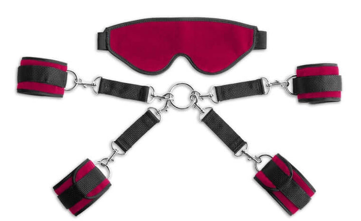 - Includes blindfold, one pair of wrist & ankle cuffs
