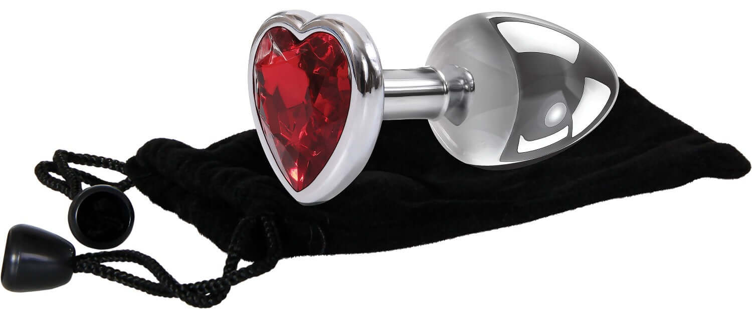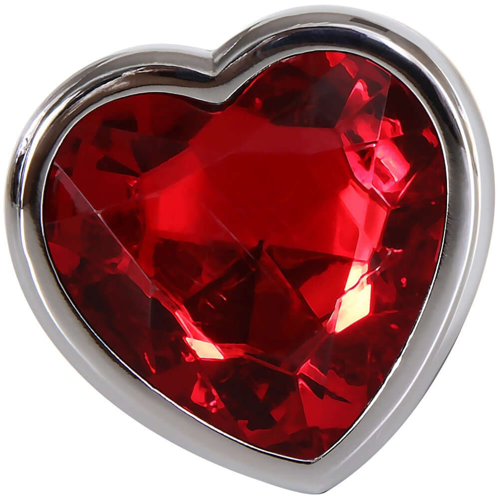 Spark your desire for decadent anal play with Adam & Eve Large Red Heart Gem Anal Plug! Featuring a smooth metal finish in lightweight aluminum, it features a sweet heart shaped gem in a deep crimson red. The slim shaft will keep it from slipping out of place even during vigorous play. You will want to show off your new sparkling booty as you bend over and tease your lover.