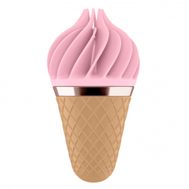 The Satisfyer Sweet Treat is probably the sweetest of all clit vibrators - because this ice cream cone has it all: It brings your clitoris to super sweet climaxes like never before with the rotating fins. Pleasantly soft, skin-friendly silicone nestles around your pleasure pearl and takes care of your sexual wellness with powerful devotion, no matter where you are. The   seductive cone fits comfortably in your hand - so you can easily control the 10 exciting vibration levels, consisting of 4 rotation rhythms and 3 right and left speeds each, using the +/- buttons.